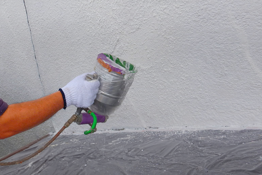 吹付塗装とはスプレーのよう専用の機械を使って仕上げを行い、ローラー塗りよりムラなく素早く塗装することが可能。