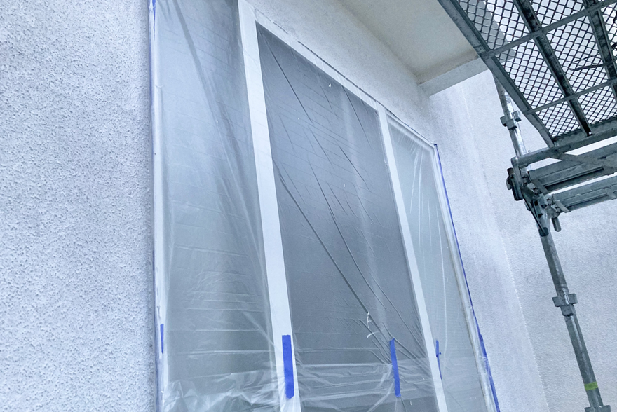 外壁塗装の際に、窓やサッシなど塗らない所をナイロンやガムテープで汚れないようにすることです。