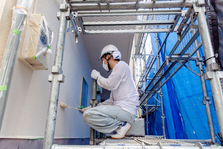 外壁塗装には下塗り、 中塗り、上塗りの3工程があります。塗り回数は下地の種類や劣化の程度によって変わってきます。